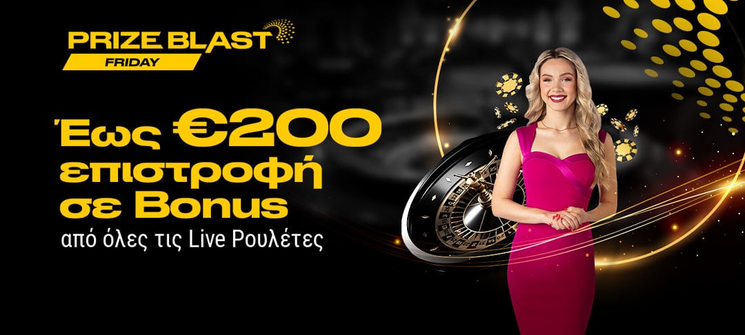 Με Επιστροφή σε Bonus έως €200 κάθε Παρασκευή, θα απολαύσεις μεγάλη ποικιλία παιχνιδιών σε όλες τις Live Ρουλέτες.