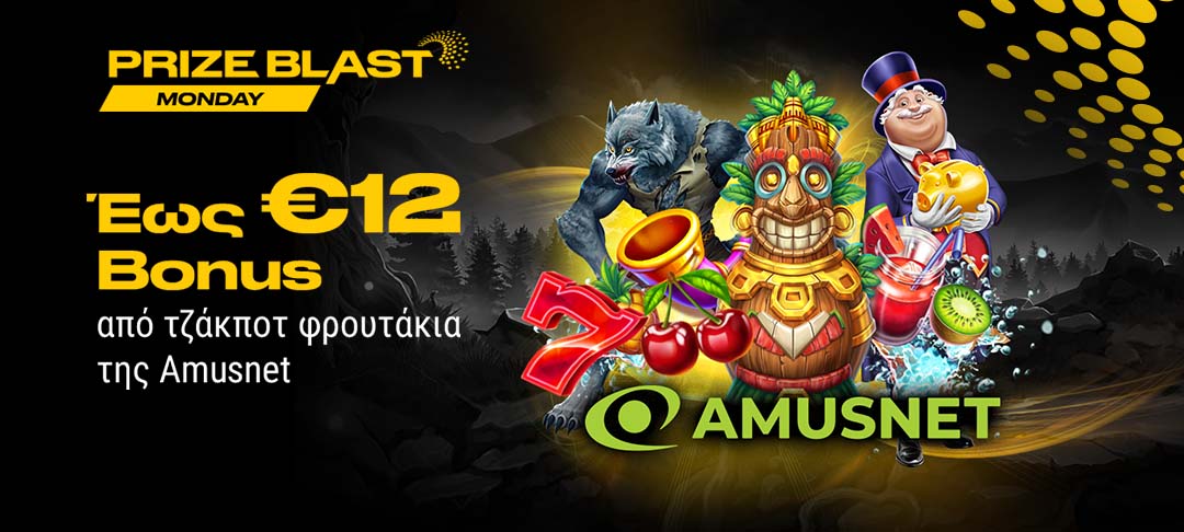 Διεκδικείς έως €12 Bonus κάθε Δευτέρα στα τζάκποτ φρουτάκια της Amusnet!