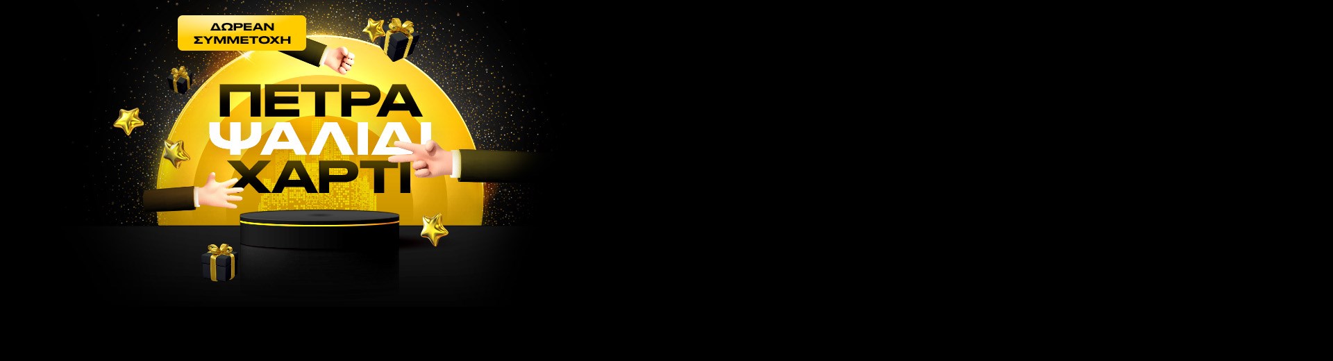 Είσαι έτοιμος να διασκεδάσεις στο «Πέτρα, Ψαλίδι, Χαρτί»; Απολαμβάνεις δωρεάν το παιχνίδι και διεκδικείς πλούσια έπαθλα ανάμεσα σε: Free Spins, Golden Chips, Tokens, Bonus για το Aviator ή για Free Spins.